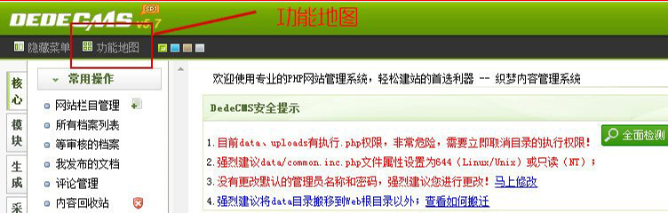 打開網(wǎng)站根目錄,找到[dede],這個文件夾就是后臺的路徑,可以隨意修改,比如修改為[admin123],此時后臺登陸的路徑為:http://www.*****.com/admin123/